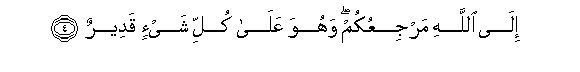 4. Ila Allahi marjiAAukum wahuwa AAala kulli shay-in qadeerun