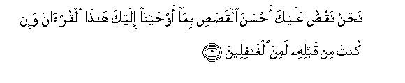 3. Nahnu naqussu AAalayka ahsana alqasasi bima awhayna ilayka hatha alqur-ana wa-in kunta min qablihi lamina alghafileena