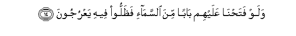 14. Walaw fatahna AAalayhim baban mina alssama-i fathalloo feehi yaAArujoona