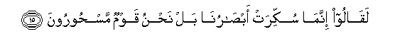 15. Laqaloo innama sukkirat absaruna bal nahnu qawmun mashooroona