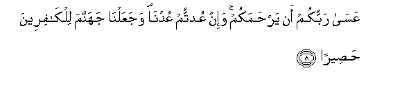 8. AAasa rabbukum an yarhamakum wa-in AAudtum AAudna wajaAAalna jahannama lilkafireena haseeran