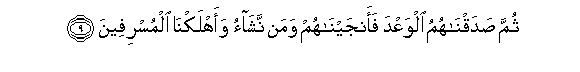 9. Thumma sadaqnahumu alwaAAda faanjaynahum waman nashao waahlakna almusrifeena
