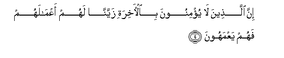 4. Inna allatheena la yu/minoona bial-akhirati zayyanna lahum aAAmalahum fahum yaAAmahoona