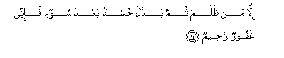 11. Illa man thalama thumma baddala husnan baAAda soo-in fa-innee ghafoorun raheemun