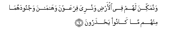 6. Wanumakkina lahum fee al-ardi wanuriya firAAawna wahamana wajunoodahuma minhum ma kanoo yahtharoona