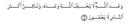 6. WaAAda Allahi la yukhlifu Allahu waAAdahu walakinna akthara alnnasi la yaAAlamoona