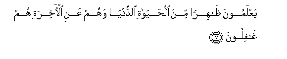 7. YaAAlamoona thahiran mina alhayati alddunya wahum AAani al-akhirati hum ghafiloona