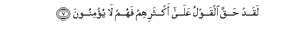 7. Laqad haqqa alqawlu AAala aktharihim fahum la yu/minoona