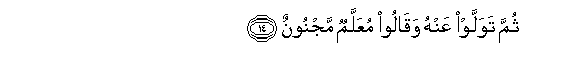 14. Thumma tawallaw AAanhu waqaloo muAAallamun majnoonun