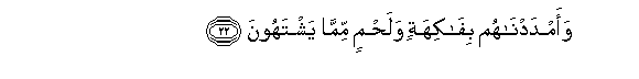 22. Waamdadnahum bifakihatin walahmin mimma yashtahoona