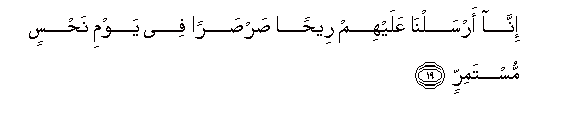 19. Inna arsalna AAalayhim reehan sarsaran fee yawmi nahsin mustamirrin