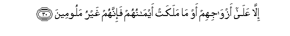 30. Illa AAala azwajihim aw ma malakat aymanuhum fa-innahum ghayru maloomeena