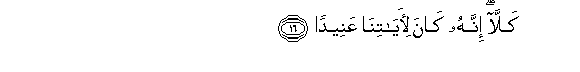 16. Kalla innahu kana li-ayatina AAaneedan